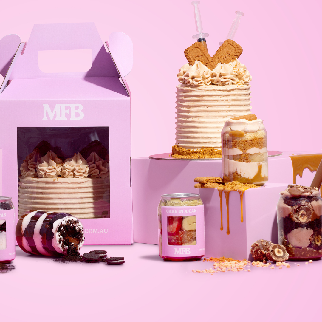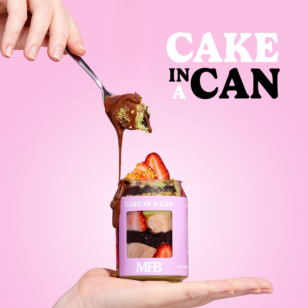 Introducing our Cake in a Can, now in 8 irresistible flavours: Ferrero Rocher, Caramel, Oreo, Lotus Biscoff, Lemon Meringue, Dubai Chocolate and Matcha!
